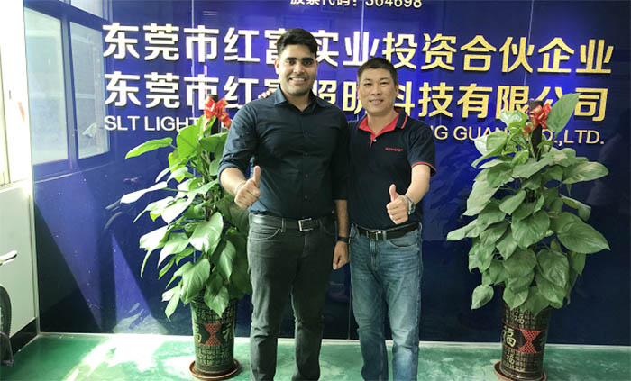 2019年8月12日,来自迪拜Manoj Kumar第一次来到红富考察,当场就下了3500个100W和4000个150W的led线性投光灯。