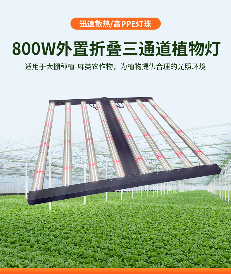 跨境供应大功率800W全光谱LED植物生长灯折叠调光蔬菜种植补光灯(800W可折叠植物灯)