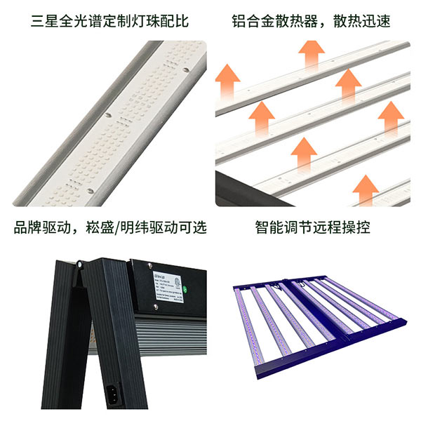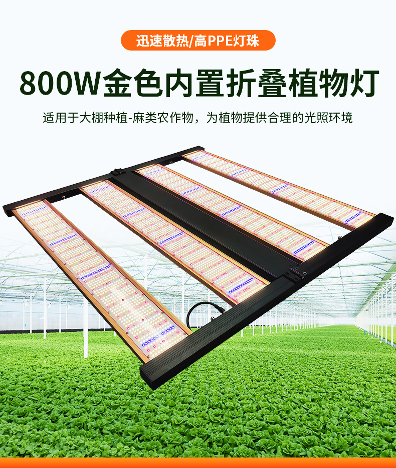 800W全光谱植物灯大功率可调光LED植物生长灯温室大棚植物补光灯(800W内置金色折叠款植物灯)